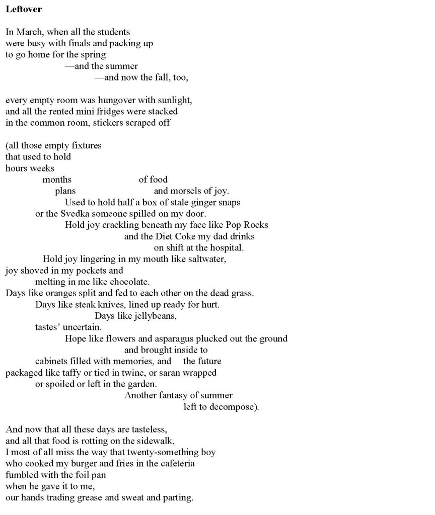 Angelina Martin is a poet, comedian, and waitress. She has been published in literary magazines such as Sea Foam Mag, Corvus Review, and Okay Donkey Mag as well as in the book Anthology: The Ojai Playwrights Conference Youth Workshop 2006-2016. Come May, she’ll once again be hosting her stand up show Buzzkill at the Buzz Mill every Wednesday in Austin, Texas. Find her on Twitter and Instagram most waking hours at @angelinaJmartin.