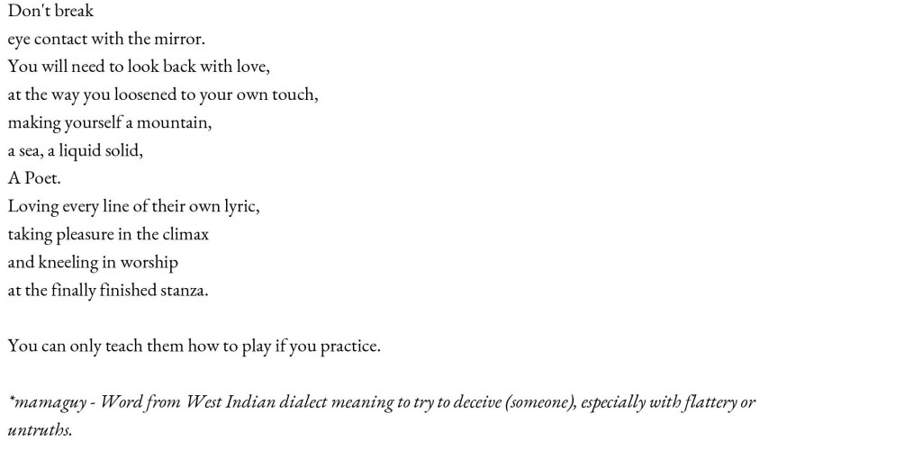 Kirby Moses is an 19-year old Trinidadian writer and poet who has always had a keen interest in reading, immersive storytelling and writing her own short stories and poems from as early as 4 years old. She enjoys using the art of spoken word as a form of activism particularly for women’s rights and empowerment of BIPOC. She has been performing as an international spoken word artiste since the age of 14 and is currently a Literary Teaching Artist.